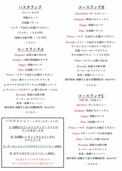 RISTORANTE IL PRESIDENTE 10月16日から31日までのランチメニューです