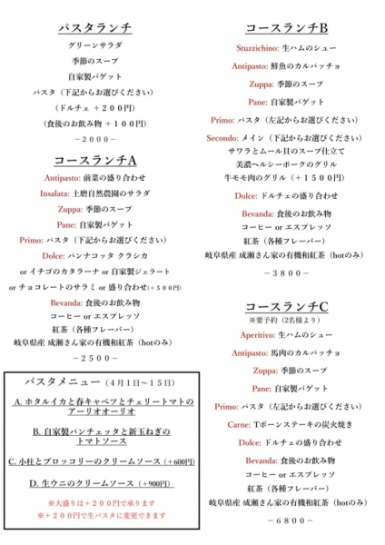 RISTORANTE IL PRESIDENTE 4月1日から15日までのランチメニューです