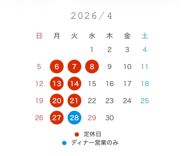 RISTORANTE IL PRESIDENTE 4月のお休みです